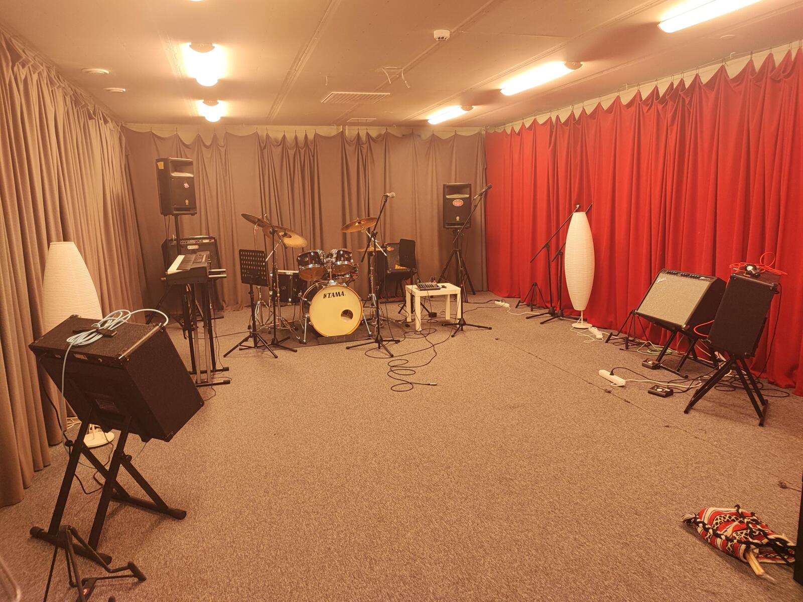 Vi har och en fullt utrustad replokal i Fryshuset på 50 kvm. genom Bilda. Vi repar på torsdagar 16-19.